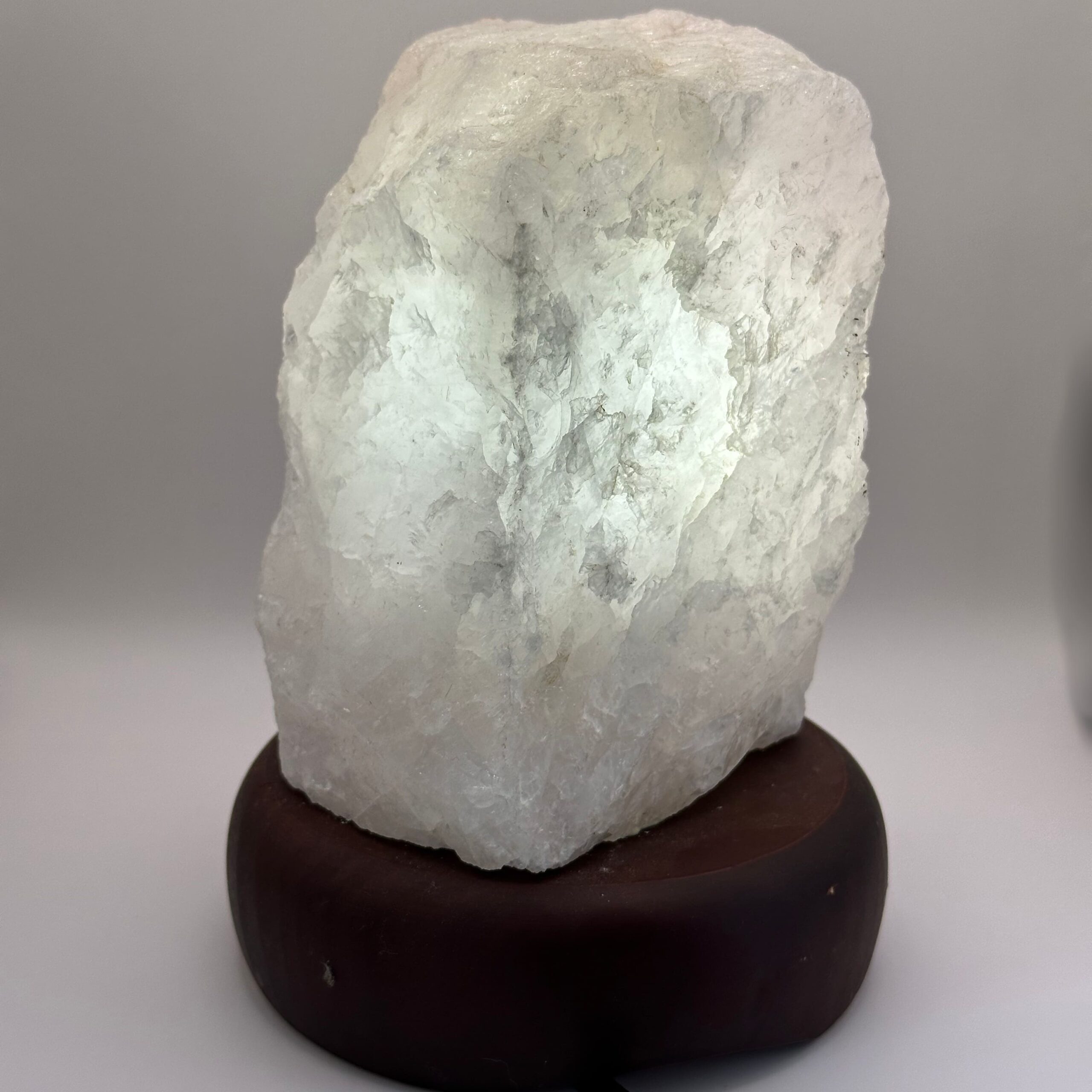 Luz de Amor: Lámpara de Cuarzo Rosa, que irradia paz y energía de amor universal.